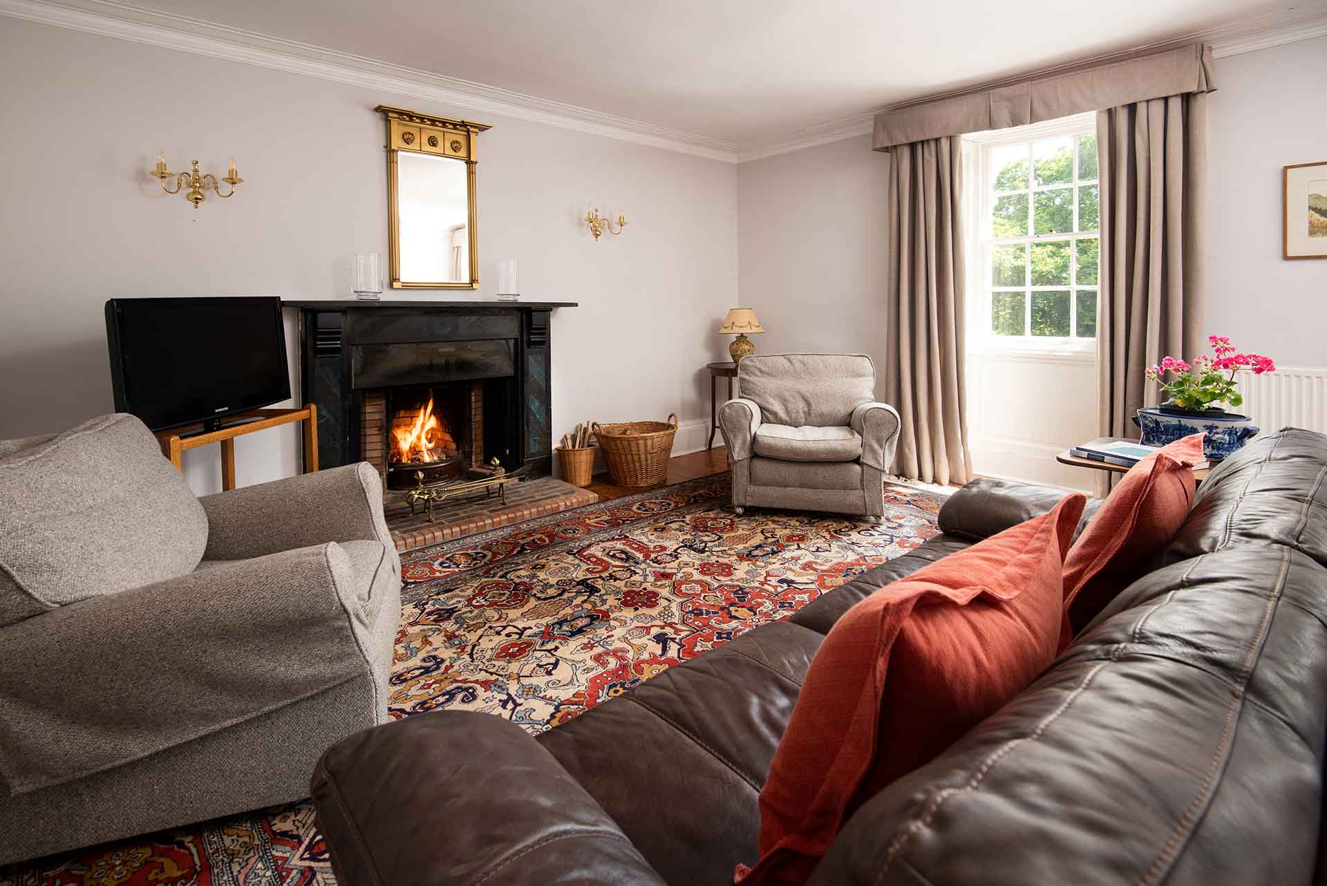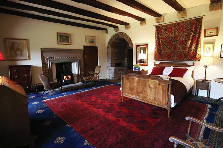 From vaulted ceilings and carved stone fireplaces to warm wood burners and garden views, the interiors of Bemersyde House are both impressive and inviting.