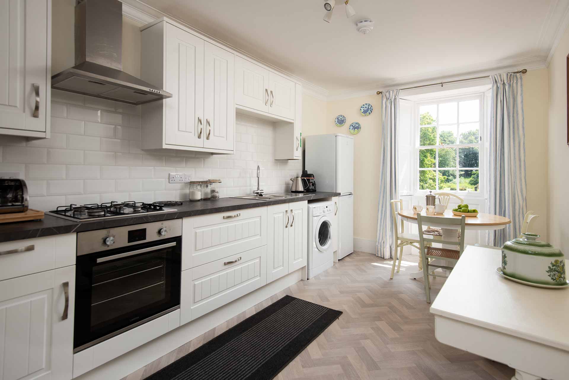 In terms of practicalities, the house is equipped with Wi-Fi throughout, along with smart TVs, board games, and a selection of children’s toys to keep everyone entertained. Travel cots and highchairs are available on request, and dogs are welcome by prior arrangement. For those arriving by car, there’s ample parking on the estate, making your stay as seamless and comfortable as possible.